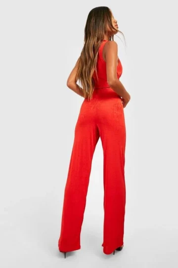 BOOHOO Acetate Slinky Low Cowl Neck & Wide Leg