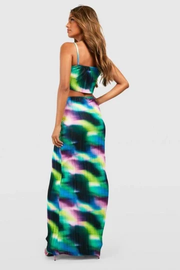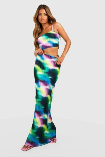 BOOHOO Abstract Plisse Square Neck Cami & Maxi Skirt