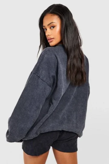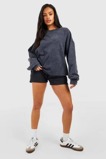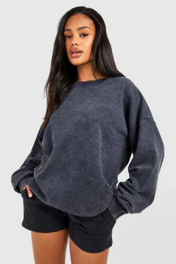 BOOHOO Acid Wash Sweatshirt Short Tracksuit