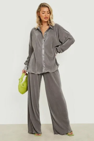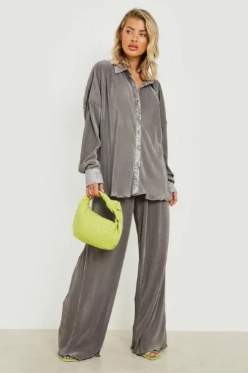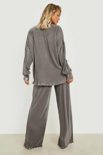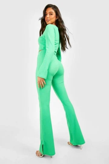 BOOHOO Premium Plisse Flared Hem Pants