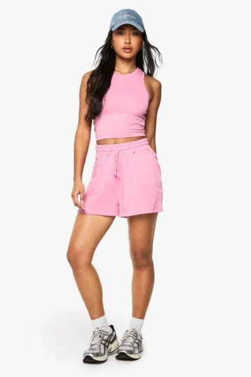 BOOHOO Ribbed Crop Top And Short Set
