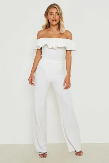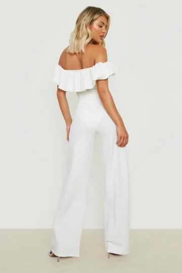 BOOHOO Volume Off The Shoulder Bodysuit & Wide Leg Pants