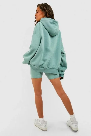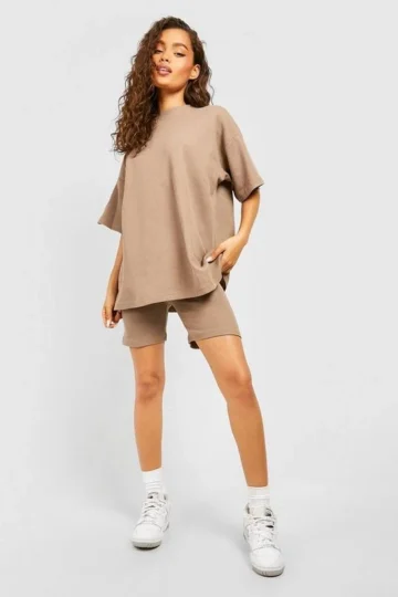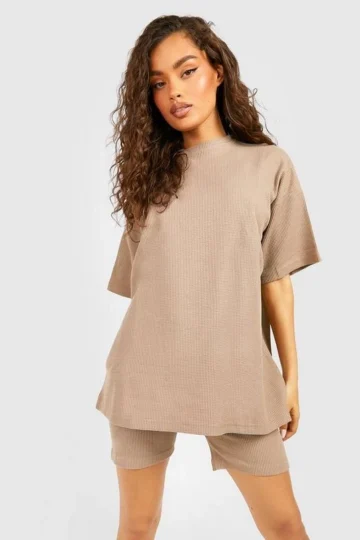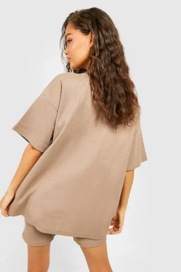 BOOHOO Waffle Oversized T-Shirt And Biker Short Set