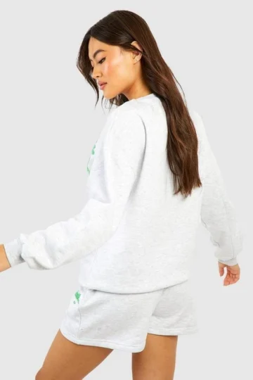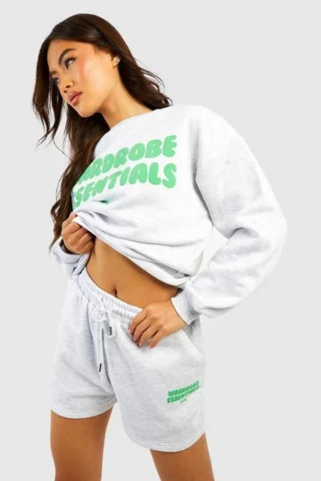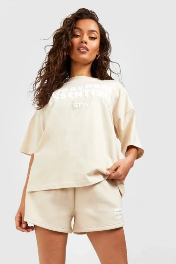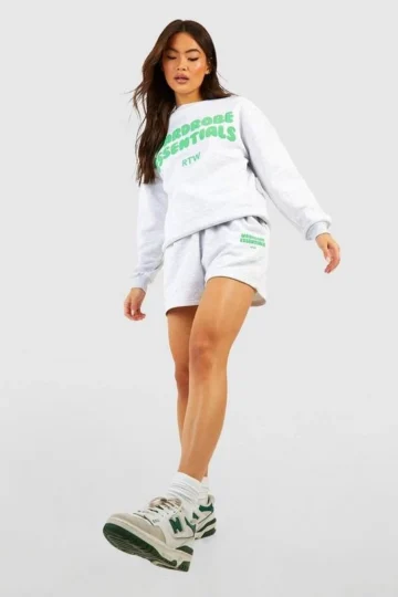 BOOHOO Wardrobe Essentials Graphic T-Shirt & Sweat Short Set