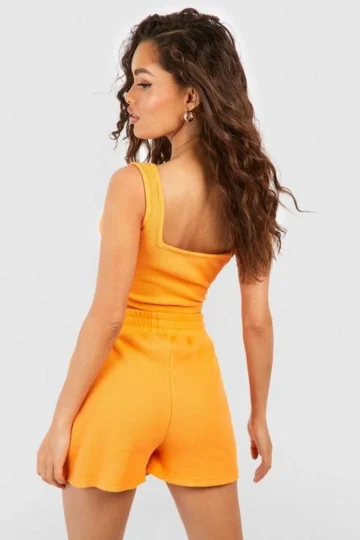 BOOHOO Waffle Square Neck Crop Top And Short Set