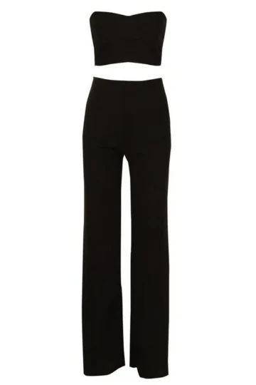 BOOHOO Bandeau Bralette And Wide Leg Pants Two-Piece Set