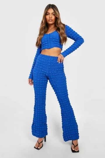 BOOHOO Bubble Jersey Knit Hook & Eye Crop & Flare