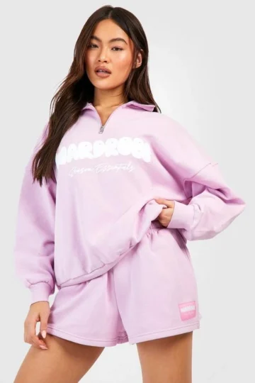 BOOHOO Bubble Slogan Half Zip Sweatshirt Short Tracksuit