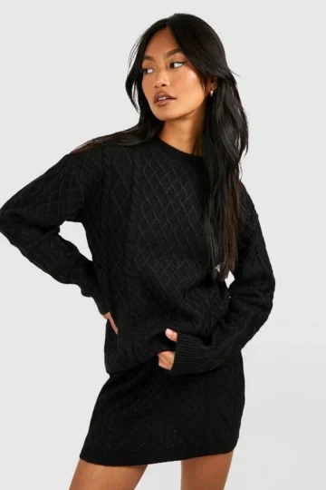 BOOHOO Cable Sweater And Mini Skirt Knitted Two-Piece