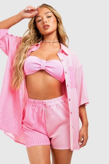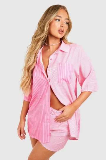 BOOHOO Contrast Stripe Relaxed Fit Shirt & Shorts