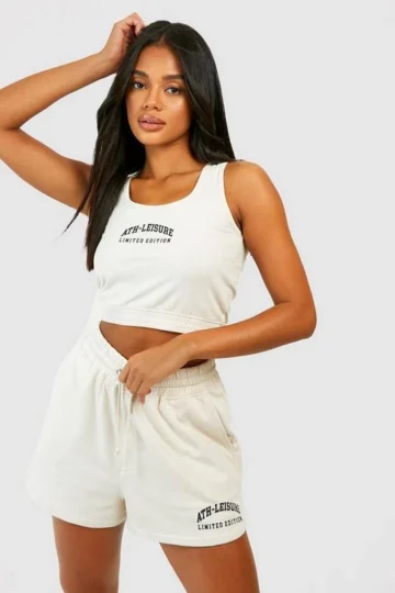 BOOHOO Ath Leisure Slogan Crop Top And Short Set