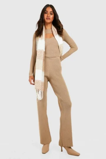 BOOHOO Knitted Corset And Wide Leg Pants Two-Piece