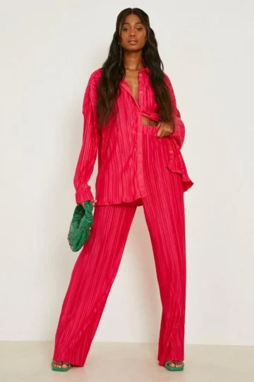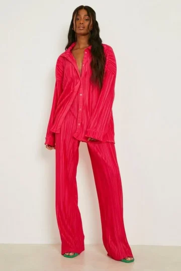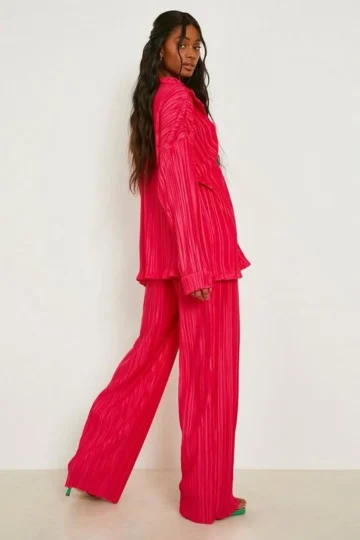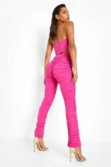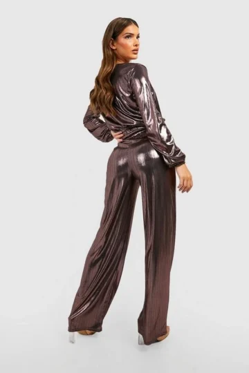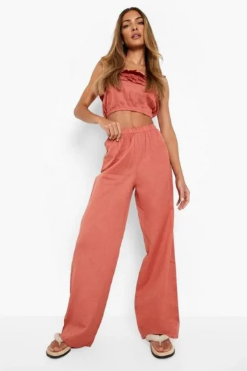 BOOHOO Linen Look Ruffle Crop & Wide Leg Pants
