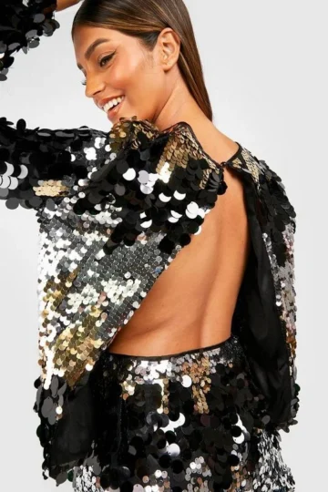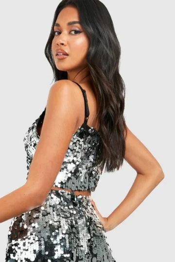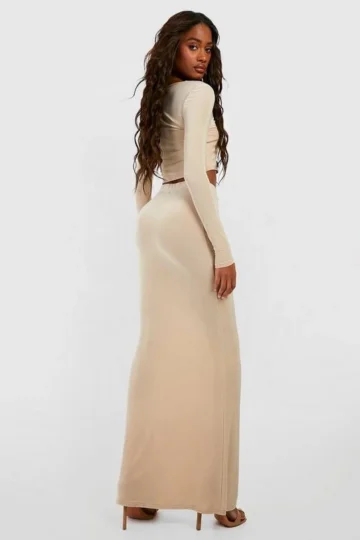 BOOHOO Long Sleeve Cropped Top & V Waist Flared Hem Maxi Skirt