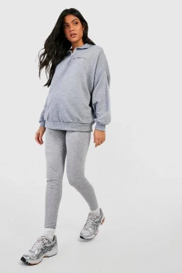 BOOHOO Maternity Dsgn Studio Half Zip Sweatshirt Legging Tracksuit