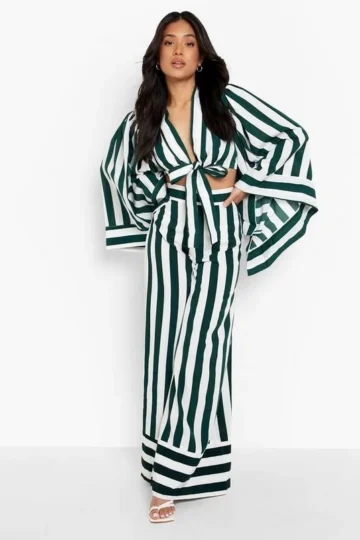 BOOHOO Petite Angel Sleeve Crop & Flare Two-Piece