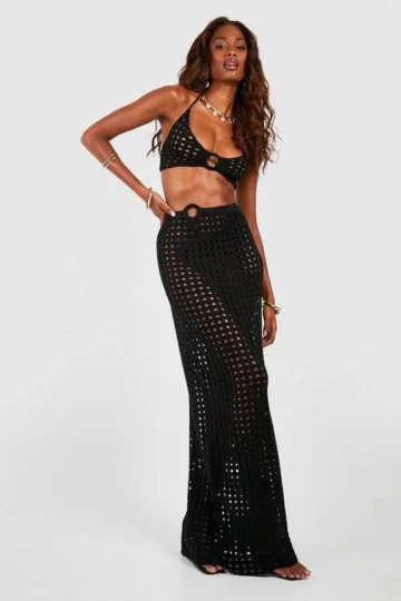 BOOHOO O Ring Crochet Maxi Skirt