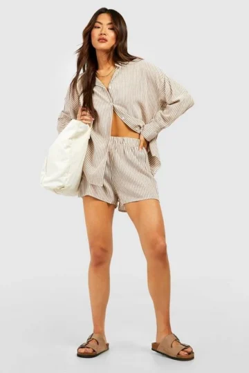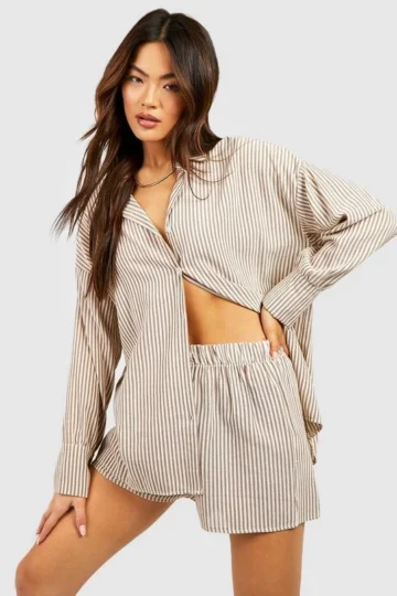 BOOHOO Oversized Striped Shirt & Short Set
