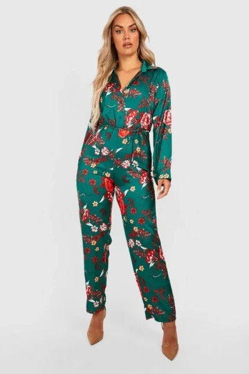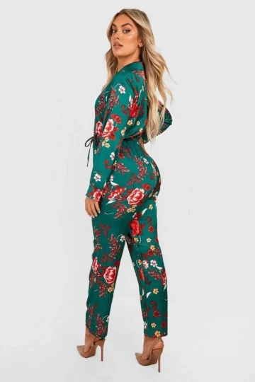 BOOHOO Plus Floral Tie Waist Jumpsuit