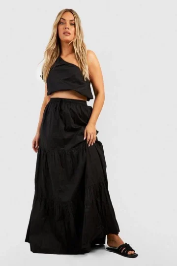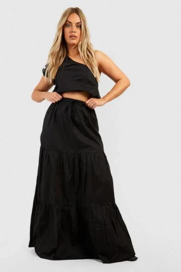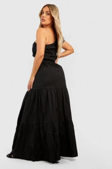 BOOHOO Plus One Shoulder Poplin Maxi Two-Piece