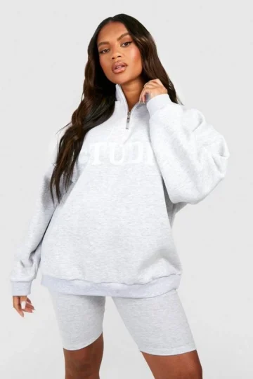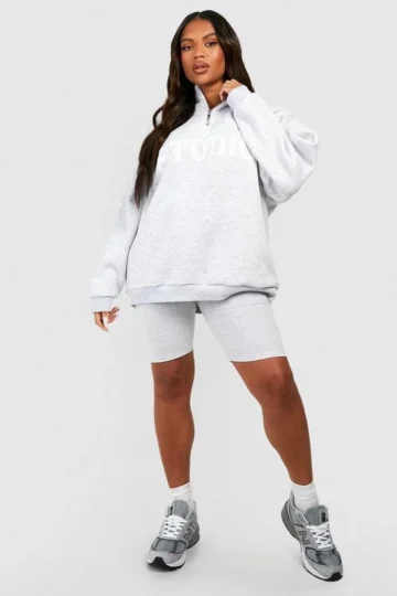 BOOHOO Plus Dsgn Studio Half Zip And Biker Short