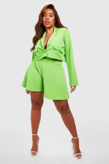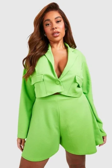 BOOHOO Plus Crepe Pocket Detail Cropped Blazer